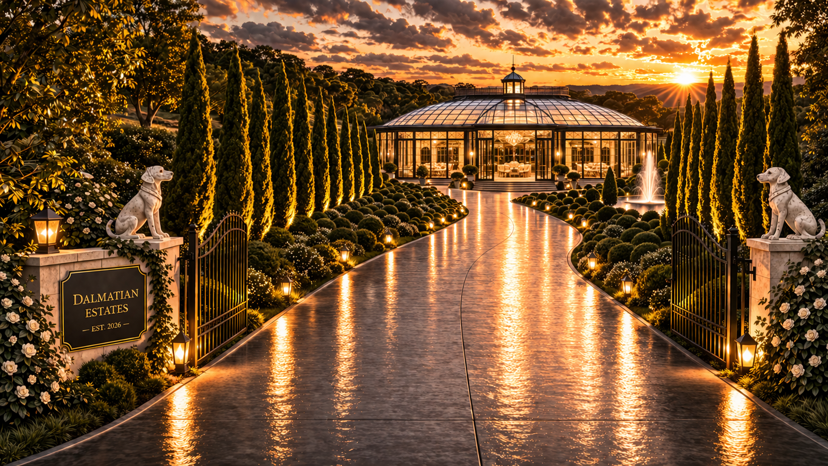 Dalmatian Estates is a purpose-built luxury wedding venue centered around a custom glass conservatory designed for unforgettable celebrations.